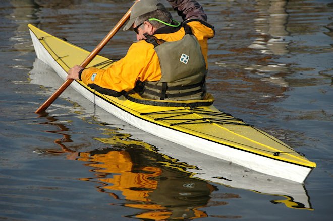 The boat has lower initial stability, meaning it feels a little unstable but once you lean it just a little the secondary stability take hold it and you feel the boat 'tighten' up, so to speak. Short Shot turns very well and course corrections are easy as leaning the boat.